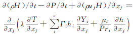式中,P為絕對壓力;T為絕對溫度;h為物質的焓;λ為熱傳導系數;Prt為普朗特數。
