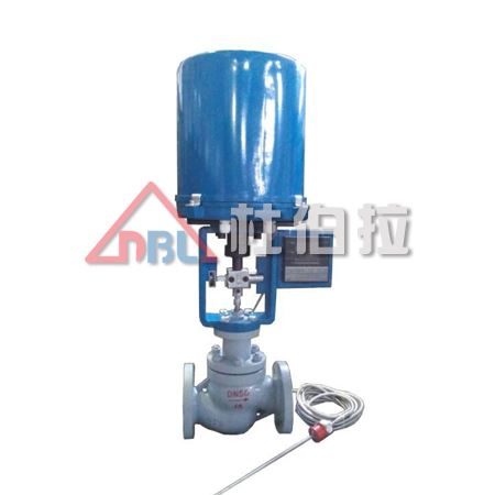 工作前主閥芯處于半開位置,傳感器處于自然狀態。接上電源,主閥芯對儲熱箱進行加熱。當溫度升到相應設定值時,傳感器即產生線性信號輸入執行機構,驅使閥芯漸開,使介質按拋物線特性流入儲熱箱,進行加熱直至設定值。這樣被控介質始終在設定溫度范圍內被控制.從而達到控溫目的。